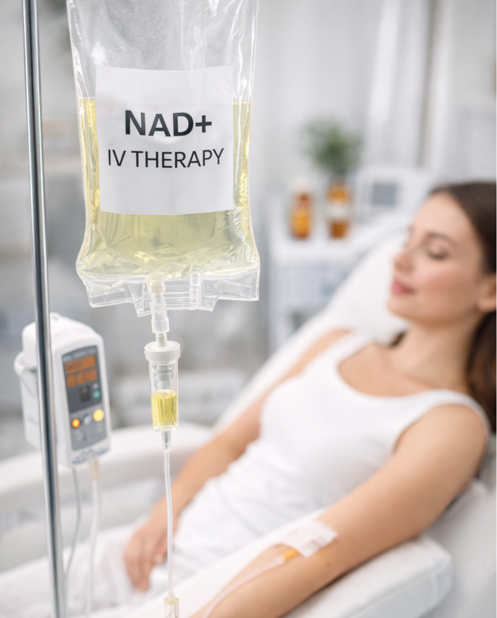NAD+ IV therapy is a restorative treatment designed to support cellular energy, mental clarity, and overall wellness. NAD+ is a naturally occurring coenzyme essential for energy production, DNA repair, and healthy aging.